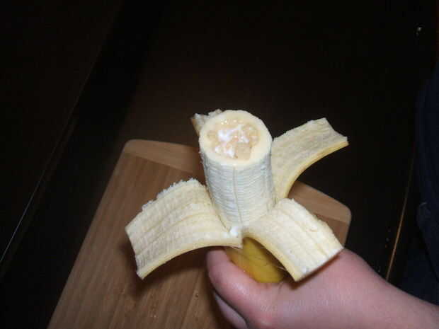 Pelar y comer. Ahora tienes mucho tiempo para mono en el trabajo.