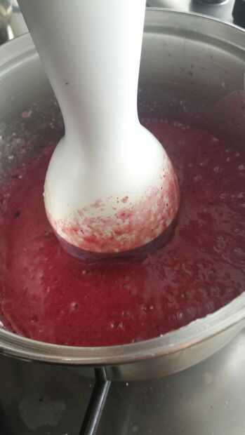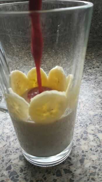 Cuando vierte, añadir las bayas a la papilla de plátano restantes y mezclar.