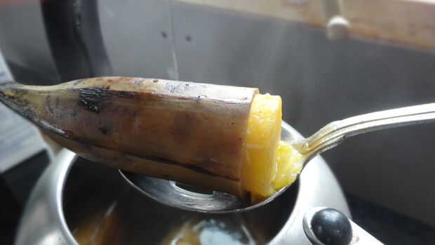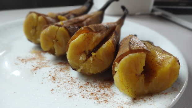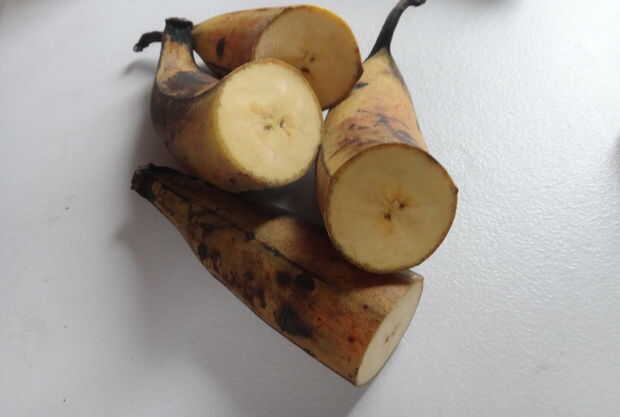 -2 plátanos demasiado maduros (que pueden ser puro interior negro y siendo bueno)