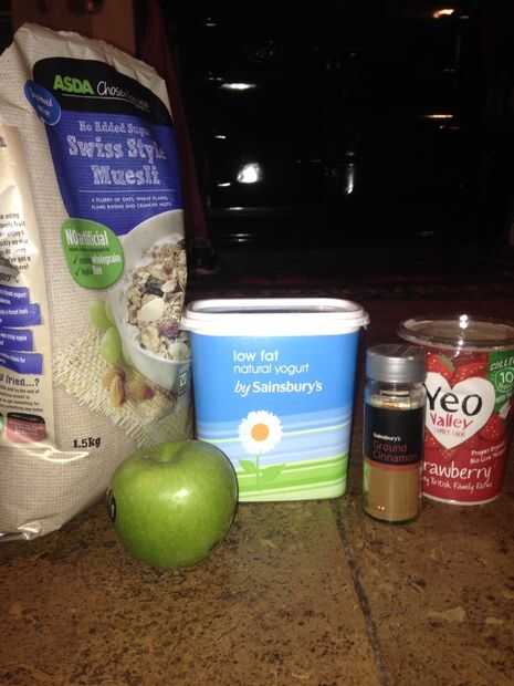 esto es una idea de un desayuno saludable que es fácil de hacer.Paso 1: uso Cosas incluye:* La mitad de un plátano* La mitad de una manzana* Un cuchillo* Queso Cottage* Griego/Turco yogur* CanelaPaso 2: Corte de manzana Cortar la manzana por la mitad