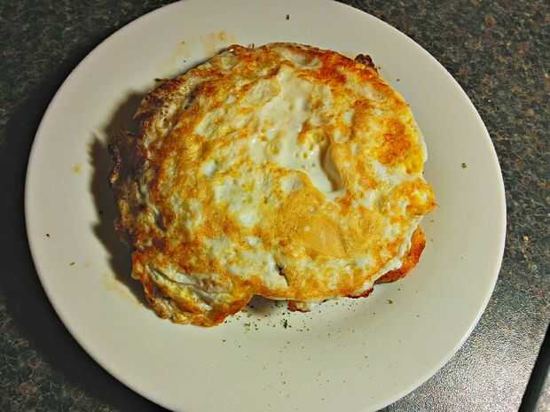Cuando el huevo está totalmente frito, ponerlo sobre el pan.