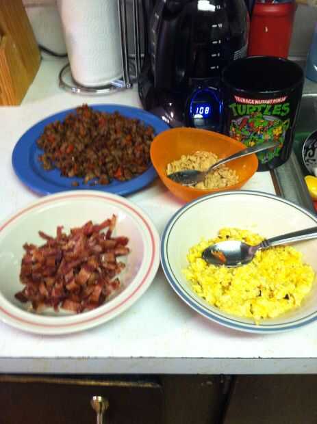 Hash brown patatas, tocino crujiente, jalapeño y habanero queso y huevos frescos con Chipotle pepper - todo al horno en una lata del mollete de la tierra. A tan sólo 6 ingredientes (además de S & P al gusto).Paso 1: Ingredientes (2 porciones)A tan só