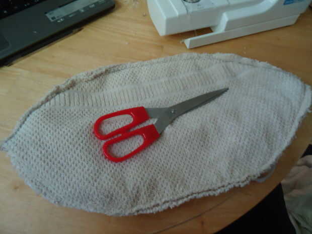 Doblar la toalla crema en tercios y dibuja una forma de almendra en el tercio superior (como un óvalo con los extremos puntiagudos).