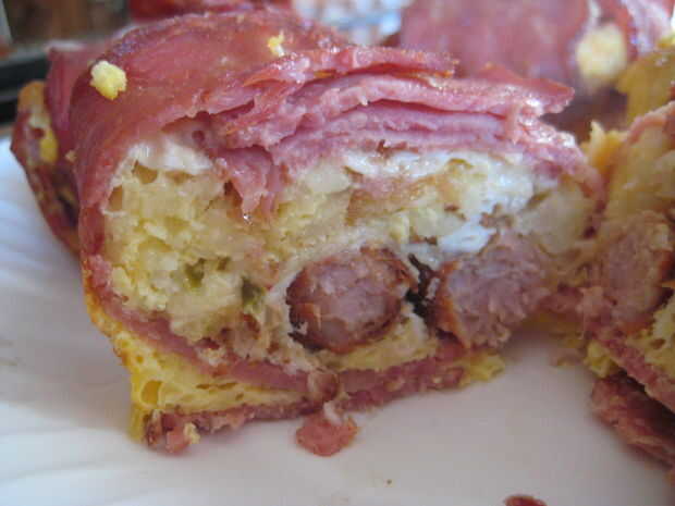 Ingredientes: Tocino bolas12 huevos duros24 tiras de tocinoHacerlo: todo lo que haces es hervir duro unos huevos. Envuelva un pedazo de tocino alrededor de los extremos largos y una pieza de tocino alrededor de la mitad. Shove EM en bollitos y cosas