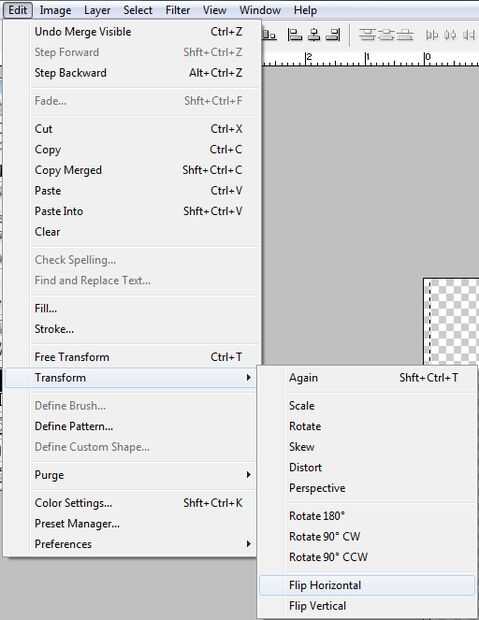 Primero hacer una copia del archivo de Photoshop para que tenga una copia de seguridad. A continuación, aplane las capas visibles. Entonces, yo voltear la imagen horizontalmente.