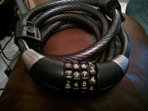 Edición (2014): desde entonces he retirado este bloqueo. Después de mudarse a Parque 'hood de Roger de Chicago, se ha convertido en rápidamente aparente que bloqueos de cable son no sólo fácil de roer pero fácil de cortar. Cerraduras de high-end de Kryptonite todavía resultan más allá de mi capacidad de crack. sus tolerancias son fuerza para la cerradura agarrar bajo tensión. la única forma de abrir uno parece ser por agotamiento. ¿alguien bueno con arduino quiere hacer un robot?