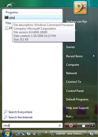 En primer lugar, abrir el Start Orb, luego en el cuadro Buscar, escriba "cmd" y cuando el símbolo aparece en la lista, no sólo abrir te lo! Usted debe primero asegúrese de que se ha destacado, luego golpear CTRL + SHIFT + ENTER. Se abrirá entonces en modo administrador.