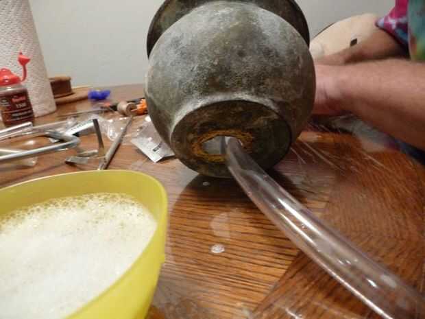 Sólo utiliza un paquete de 5g de Sugru, partirla en dos pedazos y había embalado cada pedazo alrededor de la tubería con una a cada lado del agujero. Los dedos con agua y jabón para mantener la Sugru se adhiera a ellos en vez de la maceta y el tubo de la inmersión y asegúrese de sellar completamente el agujero.