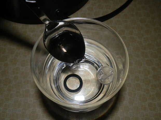 Ahora coloque ambas piezas en el vidrio que se llena con agua y un poco de un descalcificador