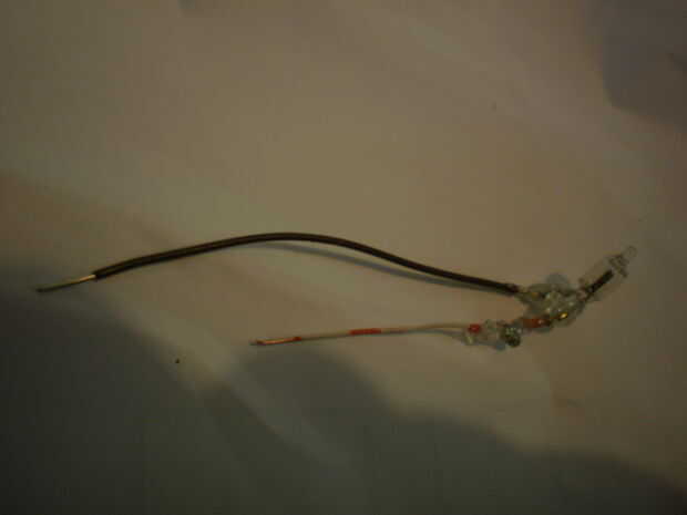 Luego suelda el otro cable a la otra pata de la lámpara de neón (otra vez, colocar el disipador de calor entre el punto de soldadura y la bombilla).