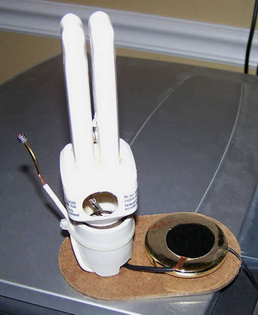 Lo único importante aquí es la bombilla CFL, el resto puede ser lo que desea. Esta versión es cruda porque hice muy rápidamente sólo para probar el concepto. También se trabajarán otros bombilla de descarga de cualquier tipo o un neón.
