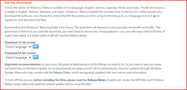 Ok. Dar a Windows 7 una visita y descargar la imagen basándose en la arquitectura de tu pc (32 bits o 64 bits). También, elija el idioma que desea instalar en.