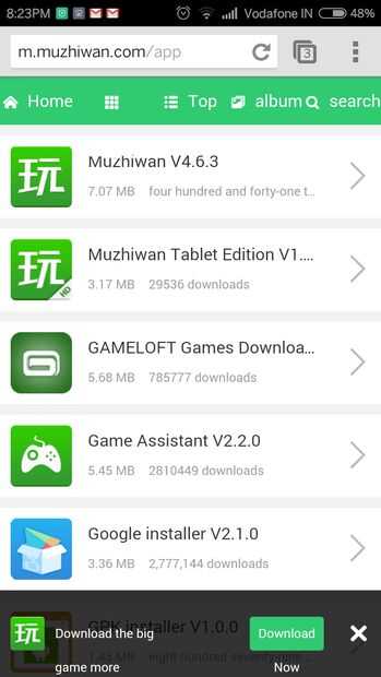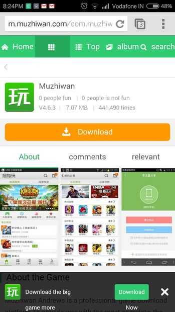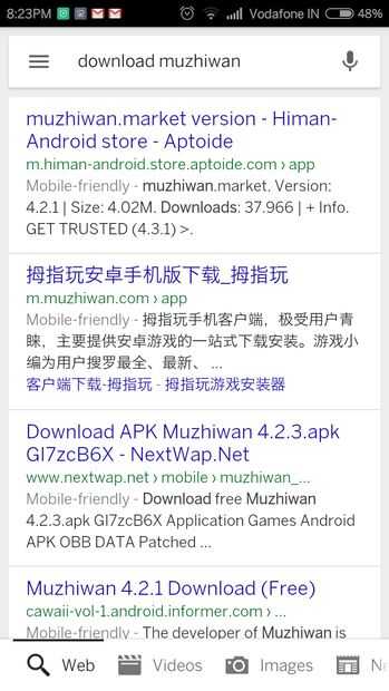 Nuestro primer paso es buscar y descargar la aplicación Muzhiwan. Haga clic en el resultado de la búsqueda con otra lengua y traducir la página al inglés. Después de haga clic en el resultado Muzhiwan que es en la parte superior. Haga clic en descargar y esperar. :)