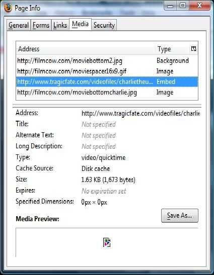 Mirar a través de la caja de información de la página hasta encontrar el vídeo que desee. Una vez que ha encontrado el video hacer clic en guardar como, escriba el nombre que desea guardar como y guardarlo!