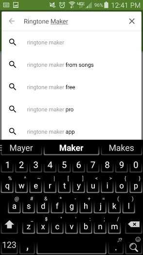 En la parte superior de la página de inicio de aplicaciones, hay una barra de búsqueda. Haga clic en esta barra de búsqueda, escriba en "Ringtone Maker" y pulse el botón de búsqueda o haga clic en la primera opción disponible que coincida con las palabras que utilizaste para tu búsqueda.