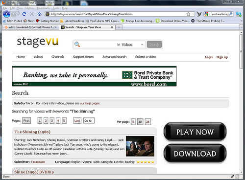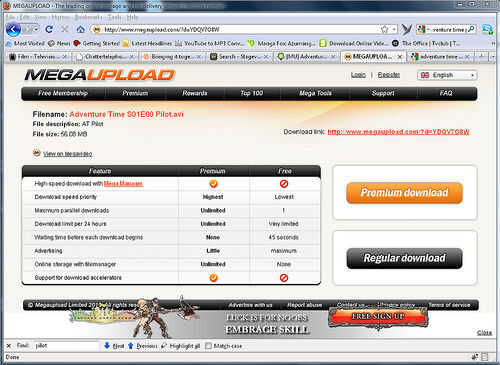 Todo depende de qué vídeo específico archivo que está buscando. Si, por ejemplo, están tratando de encontrar el último episodio de Futurama de Comedy Central, sugeriría tratando de encontrar en zShare.net películas de alta calidad, te sugiero descargarlos de Stagevu.com. Aún así, para videos descargados que lo abarca todo, sugiero tratando de encontrar en MegaUpload.com, que es un gran lugar para buscar para las películas / series. Sin embargo, no proporcionan con un motor de búsqueda para videos de navegación, así que a buscar MegaUpload, vas a 4megaupload.com