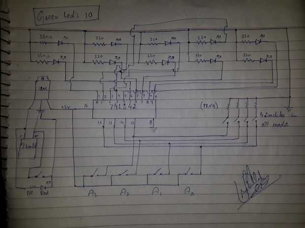 Aquí está el diagrama del circuito del decodificador baja activa.