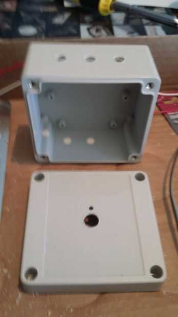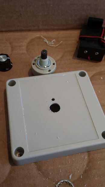 Perfore agujeros en la placa frontal del interruptor. Este interruptor tiene un pequeño trozo de indexación al lado del eje principal. Perfore agujeros para los 3 LEDs. No tengo una foto de ella, pero el soporte de la batería también requiere orificios.