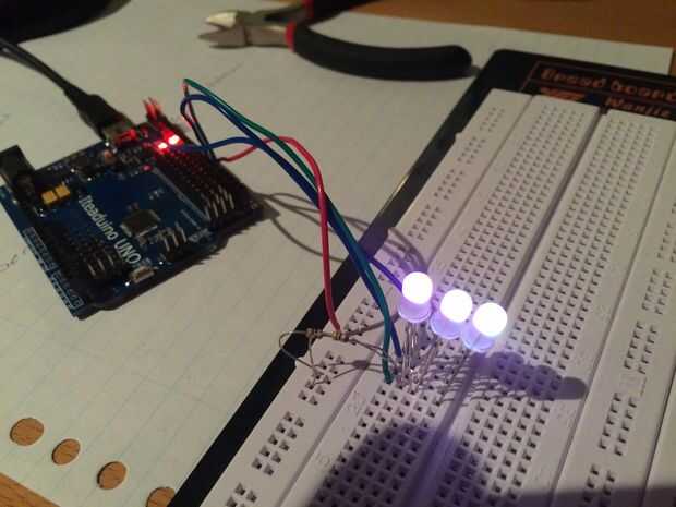Arduino utiliza 6 de sus pines digitales para los leds de alimentación y crear algunos motivos