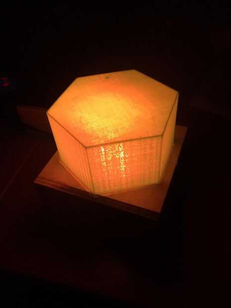 Esta lámpara está hecha usando un cortador del laser y una impresora 3D.También contiene un conector de luz con un interruptor y un enchufe.Herramientas y suministros-Impresora 3D-3D-filamento (... gr.)-Lasercutter-3,6 mm acrílico y madera contrachap