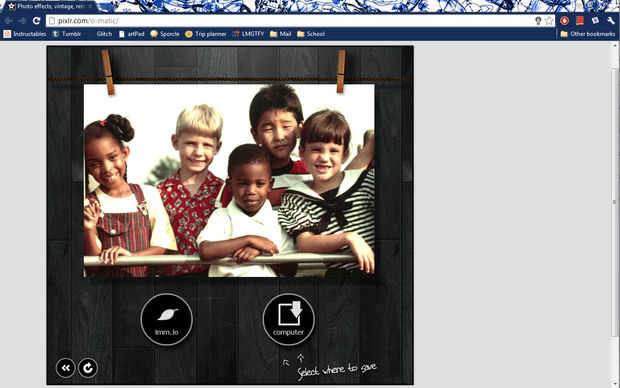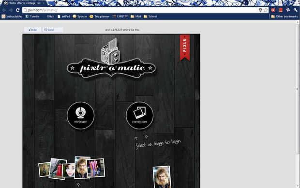 Pixlr-O-Matic, había subido la imagen y elegir el efecto de 'Julia'. Puedes elegir cualquier otro efecto, pero no sugieren que añadir un recubrimiento o un fondo, como hará editar un poco más exigentes más adelante.