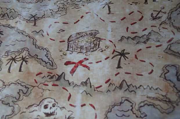 - Un mapa del tesoro que encaja en la caja grande. Usé