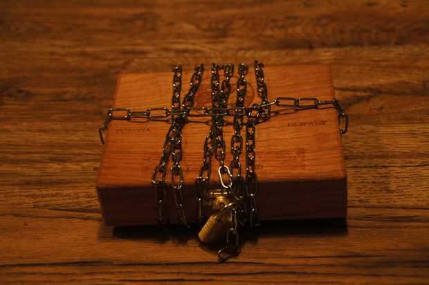 Envolver el regalo en papel de regalo bonito. Pone en la caja. Enrolle la cadena alrededor de la caja tan ajustadamente como sea posible. Conecte los extremos de la cadena con el candado. Compruebe si puede abrir la caja moviendo alrededor de la cadena. Si puedes, pegar los extremos de la cadena a la caja usando pegamento caliente, pero tenga cuidado de hacerlo de tal manera que la caja aún se abrirá cuando el candado se abre.