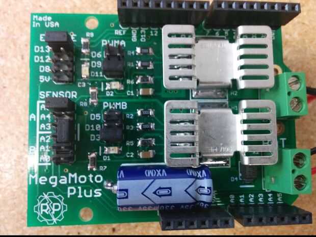 Los pernos del sensor tienen 2 puentes. El uno puente (vertical), conexión A2/A3 se utiliza para unir los sensores actuales de ambas mitades del puente H. Cada lado del puente H tiene un transistor, que se lee la corriente de. Si está usando la MegaMoto para controlar 1 actuador bidireccional, entonces habrá la misma corriente fluyendo a través de dos transistores. Si dejas el puente conectado, ambos sensores de corriente será en paralelo, que le da la mitad de lo que la lectura actual es. Si se desconecta el jumper, la lectura actual será la carga total. Para alta corriente (10A +) aplicaciones, se recomienda mantener el puente conectado para evitar demasiado actual de ir a través de los sensores, extender sus vidas.