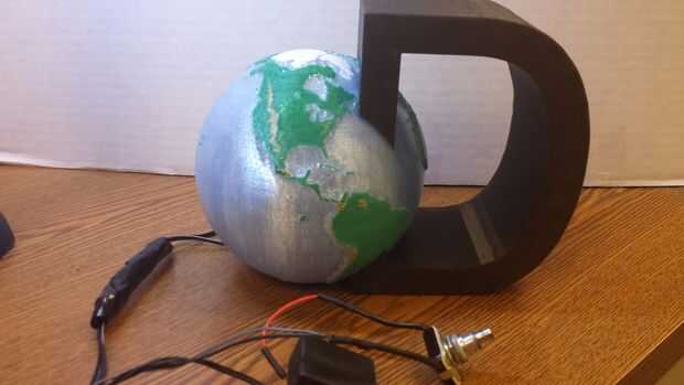 Quería realmente llevar la pieza a vivir. Comprar unos 8 en interruptores de luz azul LED de una tienda. El paquete viene con una batería y un interruptor para probar el producto en la tienda. Reemplacé el interruptor con un interruptor de palanca de un microscopio antiguo (soy profesora de Ciencias y matemáticas). Desde allí perforó un agujero en el globo y coloque con cuidado las tiras de LED en el mundo. Escondí el alambre y el interruptor detrás de la espalda en la "D". El Logo de descubrir ahora brilla con un simple interruptor para encender y apagar.