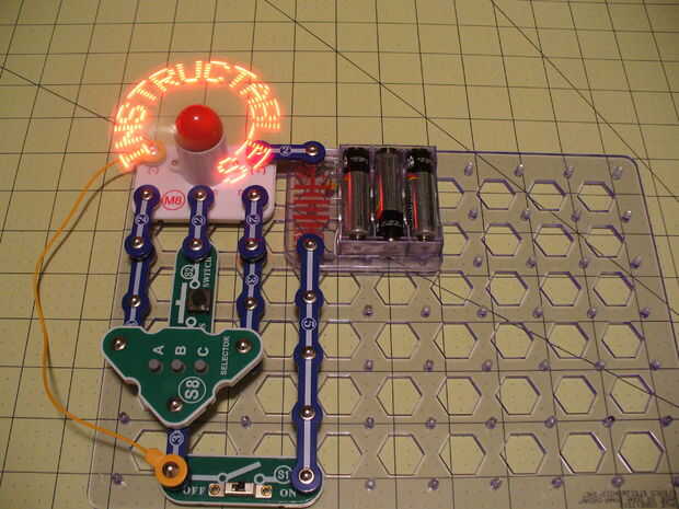 Circuitos de Snap es un juguete educativo que enseña electrónica con componentes electrónicos de encaje a presión-junto sin soldadura. Cada componente tiene el símbolo esquemático y una etiqueta impresa en su caja de plástico para fácil identificación. Que encajen con lo que parecen ser los broches de la ropa ordinaria. Los componentes también encajen en una rejilla base plástica de la 10 X 7 algo análoga a una placa sin soldadura.