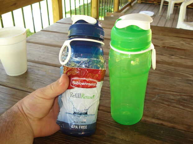 El primer paso es comprar dos barato dólar general botellas de agua que son de diferentes colores para fácil identificación que tienen un tirón fuerte abrir la tapa.