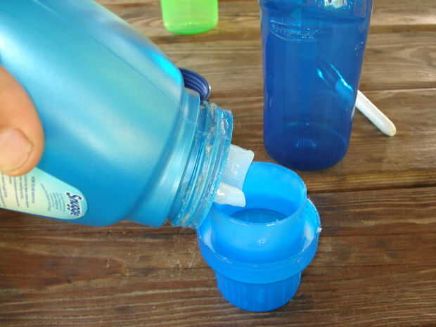 paso (1) Llene la tapa con suavizante y vierta en la botella.