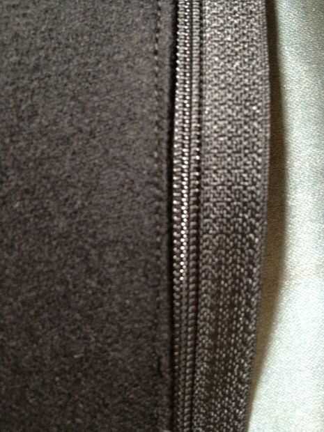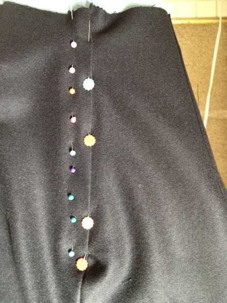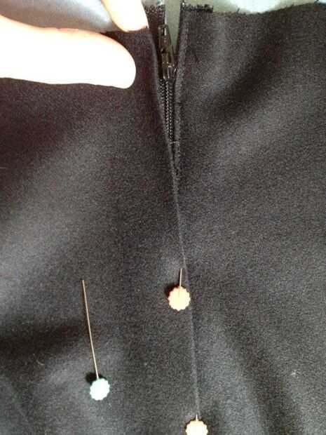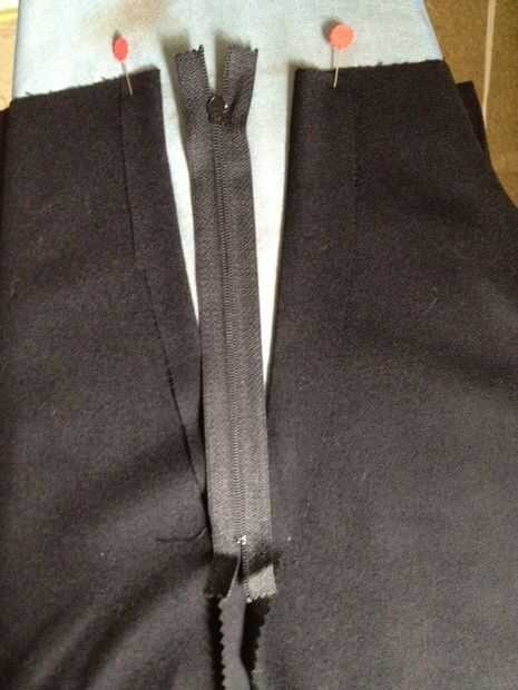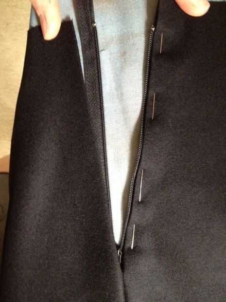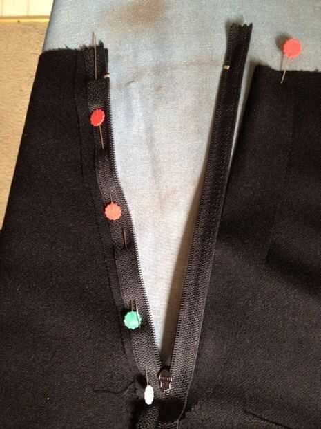 Presione sus márgenes ~ más grandes de la costura margen a la derecha (5/8 pulgada) que la izquierda (1/2 pulgada). Coser el lado izquierdo de la cremallera primero usando su pie de cierre de máquinas de coser, coser cremallera cerca de los dientes de la cremallera (1/8 de pulgada). Cierre cremallera y gire su falda hacia el exterior (lado derecho). Asumir la cremallera plegadas y vuelta para el lado de la cremallera cosida (deben solaparse las puntadas en el lado cosido, aproximadamente 1/8 de pulgada sobre las puntadas del lado izquierdo). Precisar la vuelta. Sentir donde pone la cremallera en el lado derecho e iniciar fijación en el lado izquierdo de los dientes de la cremallera (lo hago por la sensación) y la línea de costura del perno (si nos fijamos en las fotos, hay dos filas de pines... los pernos tamaño cabezas más grandes son el lado traslapado y los pernos de bola pequeña cabeza su línea de costura). Coser cuidadosamente la línea de costura en la parte inferior de la cremallera, girar la falda y coser en la parte inferior de la cremallera/vuelta.