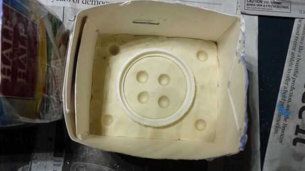Primero empiezo con un molde que sea lo suficientemente grande como para permitir al menos un ½" de material que rodean completamente el objeto. Yo corte un cartón de leche para el tamaño necesario para este molde.