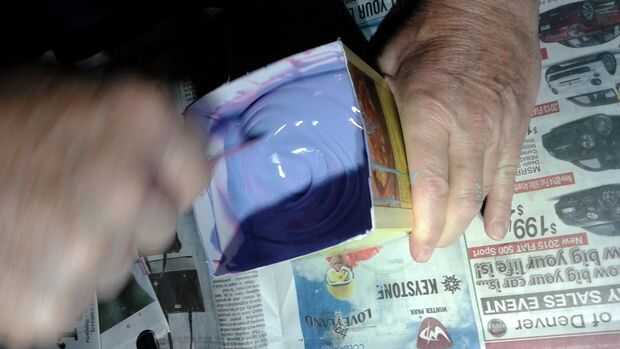 No tenemos una cámara de vacío para eliminar las burbujas de aire de nuestra mezcla por lo que utilizamos un chorro fino alto por varios minutos. Mientras lo vierte, es mejor echar en una esquina o el centro del objeto.