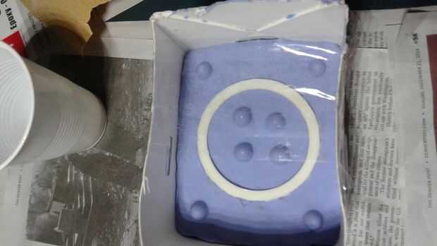 Nota la cinta en la parte superior de la caja de moldeo. Usé esto en ambos vierte porque aprendí la manera dura que si no utilizas rígida forma los lados del cuerpo se expandirá hacia fuera lo que es difícil reutilizar la caja de moldeo, después le da la vuelta el modelo. Simplemente mantiene la cinta en forma de un cuadrado.