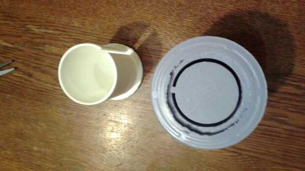 Para este molde, usé una lata de tuerca y funcionó maravillosamente. Para éste, la tapa superior se pega a la parte inferior de la lata de la tuerca.