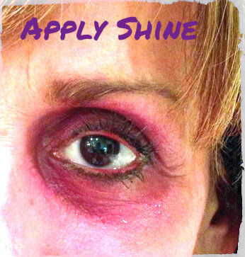 Usando un q-TIP, aplica algún jarabe de Karo a la zona del pómulo para brillo--allí es una razón que ellos llaman un ojo morado un ojo "morado"! Generalmente utilizo glicerina o jalea transparente de Kryolan pero también se me olvidó traer éstos hogar (oops).