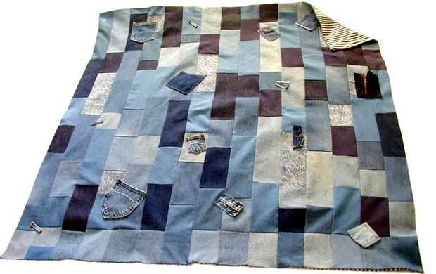 Se trata de una forma interesante de usar ropa vieja de mezclilla y tela desechos... o compró la tela del dril de algodón (si usted está queriendo un bonito regalo para alguien). El dril de algodón debe ser al menos de 4" de ancho. No tienes que utilizar los bolsillos, correa bucles, etc para virar el tejido hacia abajo pero creo que lo da uno de una mirada amable. Te advierto ahora, en proceso de hacer esta colcha, que obtendrá un montón de hilos de rosca del dril de algodón por todas partes. También, después de que haya terminado con este proyecto, por favor limpie su máquina como va a crear muchos hilos y pelusa de la tela. Vamos a empezar.