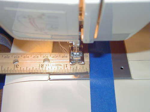 Si su máquina de coser no está marcada, puede pegar cinta mitad de una pulgada de la aguja. Todas las costuras son de media pulgada.