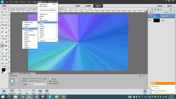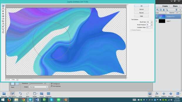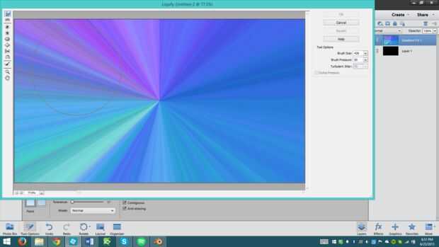 Esta es la divertida parte. Haga clic en filtro, distorsionar, licuar. Prácticamente puede hacer nada con esto. He encontrado que un cepillo más grande funciona mejor, pero puede usar lo que quieras. No tienes que hacerlo como distorsionado como lo hice, que es sólo un ejemplo de lo que podría hacer. Una vez que haya terminado, haga clic en Aceptar. Es normal que tome mucho tiempo para devolver el resultado de licuar.