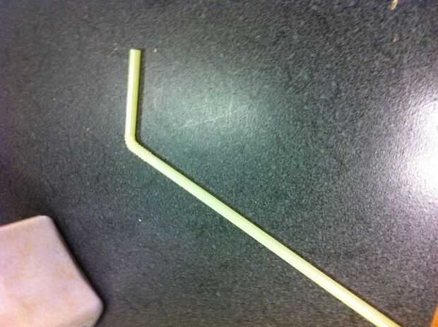 Cortar la paja justo debajo de la 'articulación' para que tenga un tubo de plástico largo suave solamente.  Deseche la parte corta con el nudillo.