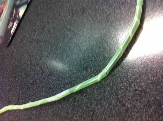 A.) si quieres el cable para ser rígido, introducir las tijeras en la boca de la paja y corte 8.metal. Cuando haya terminado, todavía debe estar en una sola pieza con un corte hacia abajo de su vientre.