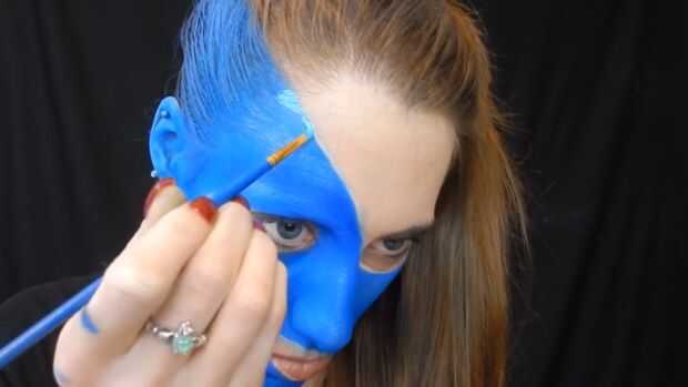 Para arrancó hacia atrás papel usé una pintura de cuerpo azul metálico para rellenar aleatoriamente.