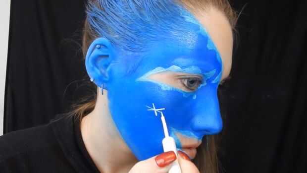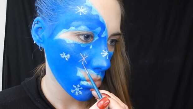 Para los copos de nieve usé delineador líquido blanco y una pintura de cuerpo metálico de plata. Me quedé con sólo 3 a 4 formas de diversos copos de nieve.