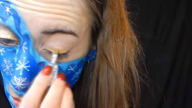 Usé un brillo oro en mi tapa, luego he utilizado un delineador líquido de plata, y luego me puse rimel.