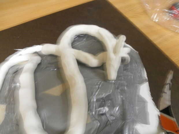 Adjuntar como se muestra y pose el dragón sobre la roca.