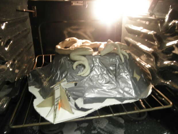 Utilizar una temperatura baja para que no derrita la ductape y hornear durante unas horas.