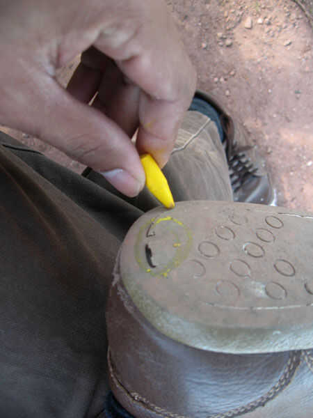 -Decidir en la ficha (del kit de reparación que han comprado anteriormente) de que encaja perfectamente la zona desgastada. Tomar la decisión.