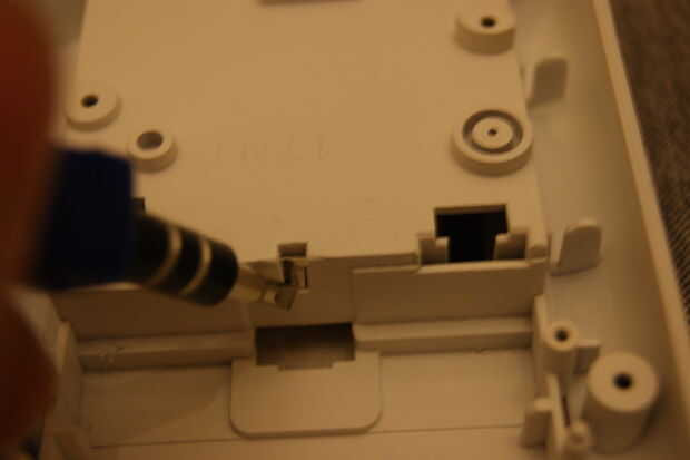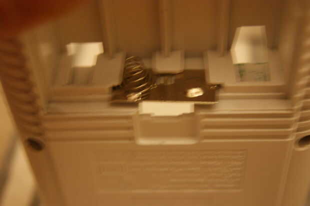 Para la primavera de pilas, verás una lengua que permite para bloquear estos parches de la primavera. Apoyo anterior con un objeto plano y afilado, parches caerá fácilmente.
